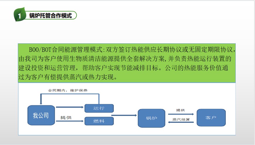 樂山勇騰生物能源有限公司,位于四川省樂山市五通橋區(qū)石麟鎮(zhèn)麒麟街463號。是一家集生物質(zhì)能源技術(shù)研發(fā)、技術(shù)推廣、產(chǎn)品制造、銷售為一體的企業(yè),專業(yè)從事生物質(zhì)能源項(xiàng)目投資,設(shè)備生產(chǎn),安裝運(yùn)營,燃料供應(yīng),能源托管的綜合性服務(wù)企業(yè)。公司依托強(qiáng)大的研發(fā)和技術(shù)實(shí)力,在實(shí)踐中逐步形成了富有競爭力的“3+1”業(yè)務(wù)運(yùn)營模式(燃料生產(chǎn)與銷售、鍋爐承包托管業(yè)務(wù)、設(shè)備節(jié)能改造+供熱項(xiàng)目投資運(yùn)營),年銷售額達(dá)數(shù)千萬元。